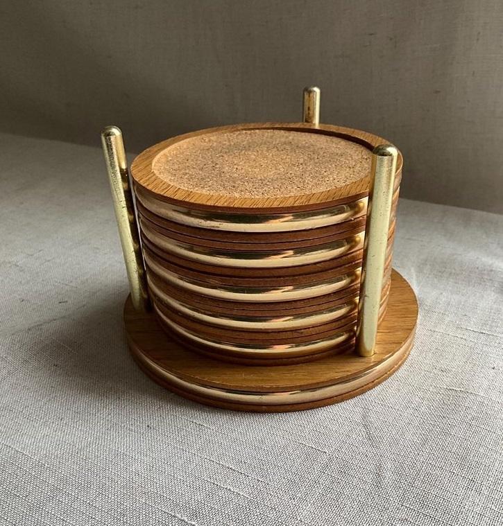Posavasos de madera rústica ecológicos personalizados con inserto de corcho para bebidas, café y tapas de Decoración de mesa tapas y cierres de botellas