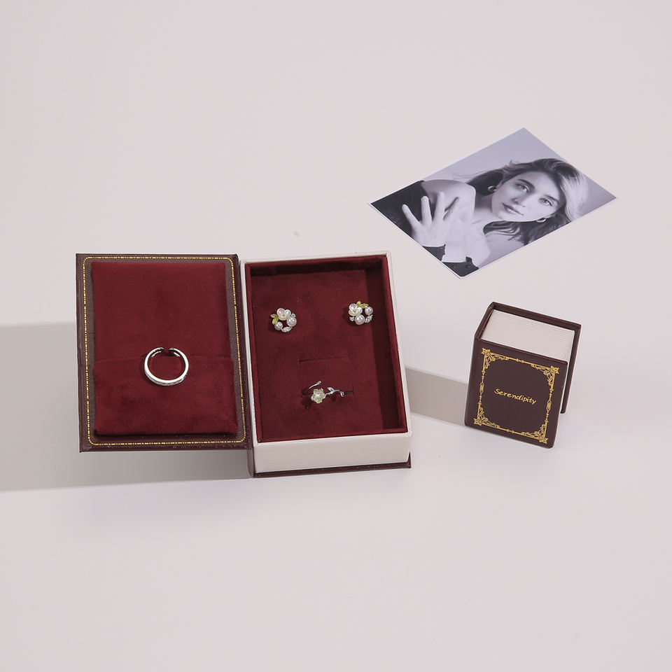 Caja de Regalo Ecológica Personalizada para Joyería, Caja para Collar y Pulsera en Forma de Libro con Tapa Magnética y Cintas