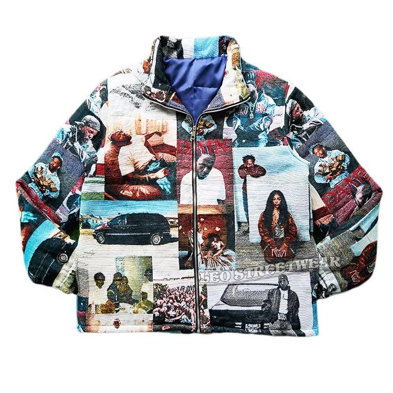 Chaqueta Acolchada Impermeable de Invierno Negra Unisex de Talla Grande con Cuello Alto de Nailon Tejido con Estampado en Relieve Personalizado de Alta Calidad