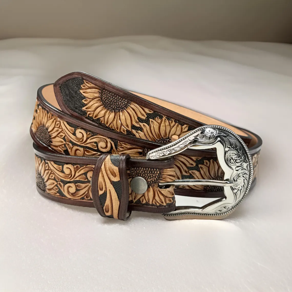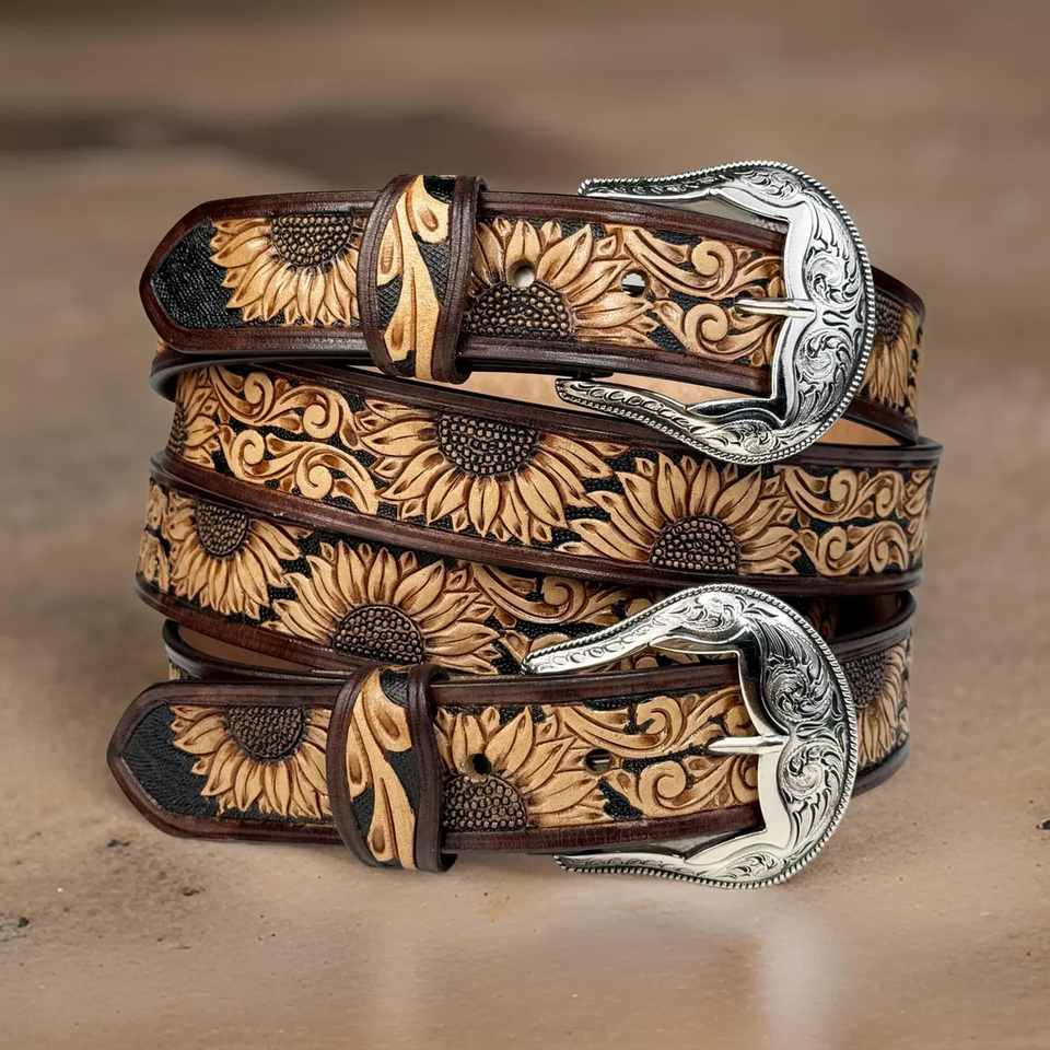 Cinturón de cuero repujado estilo western