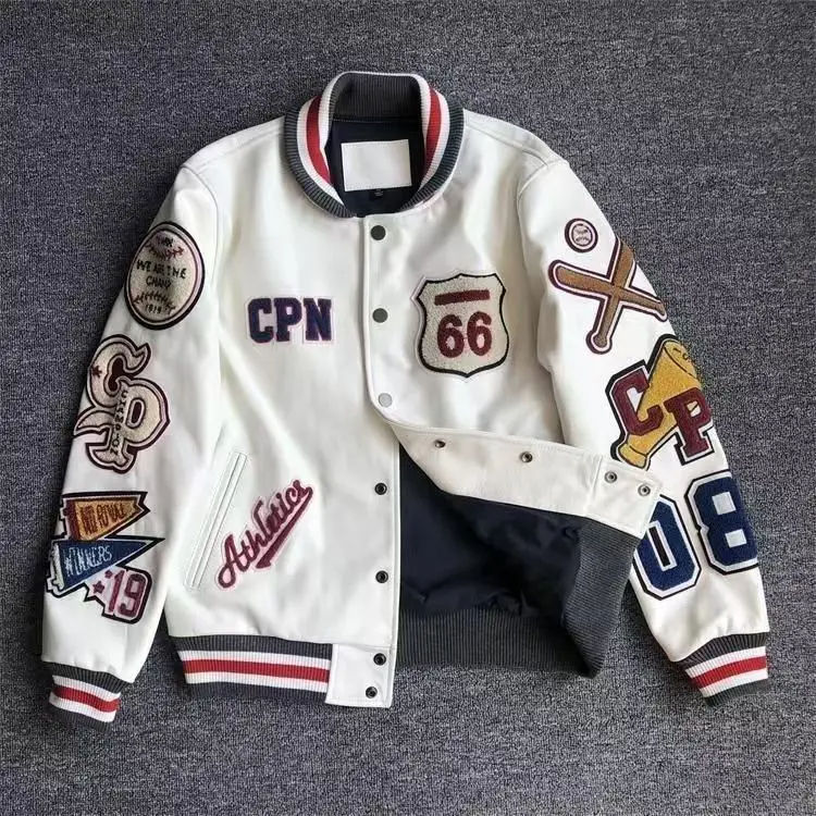 Chaqueta universitaria Letterman bordada personalizada para hombre, cortavientos universitario de gran tamaño con cuello de béisbol, Material de poliéster