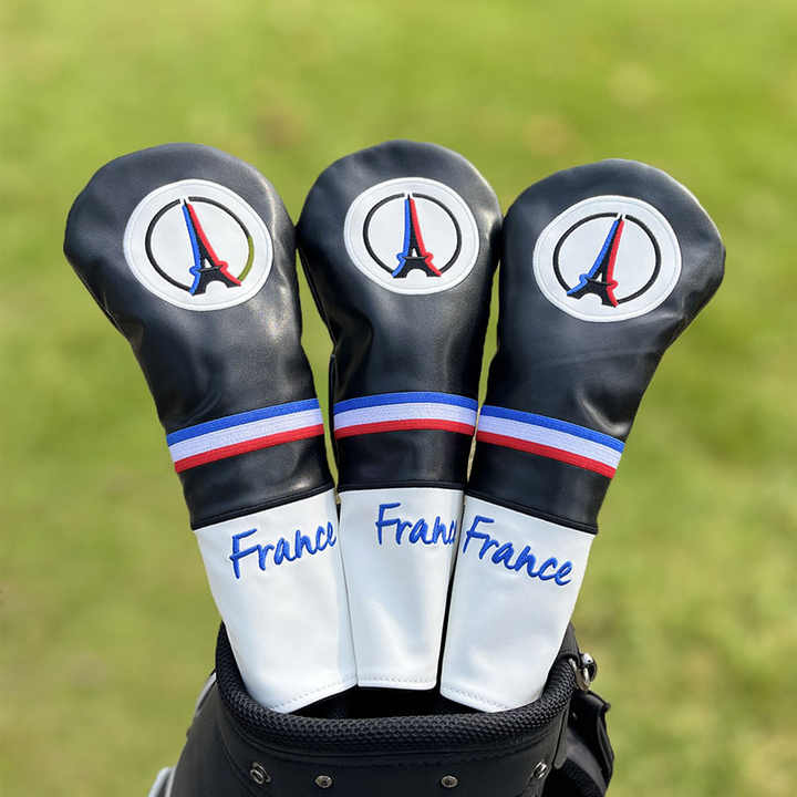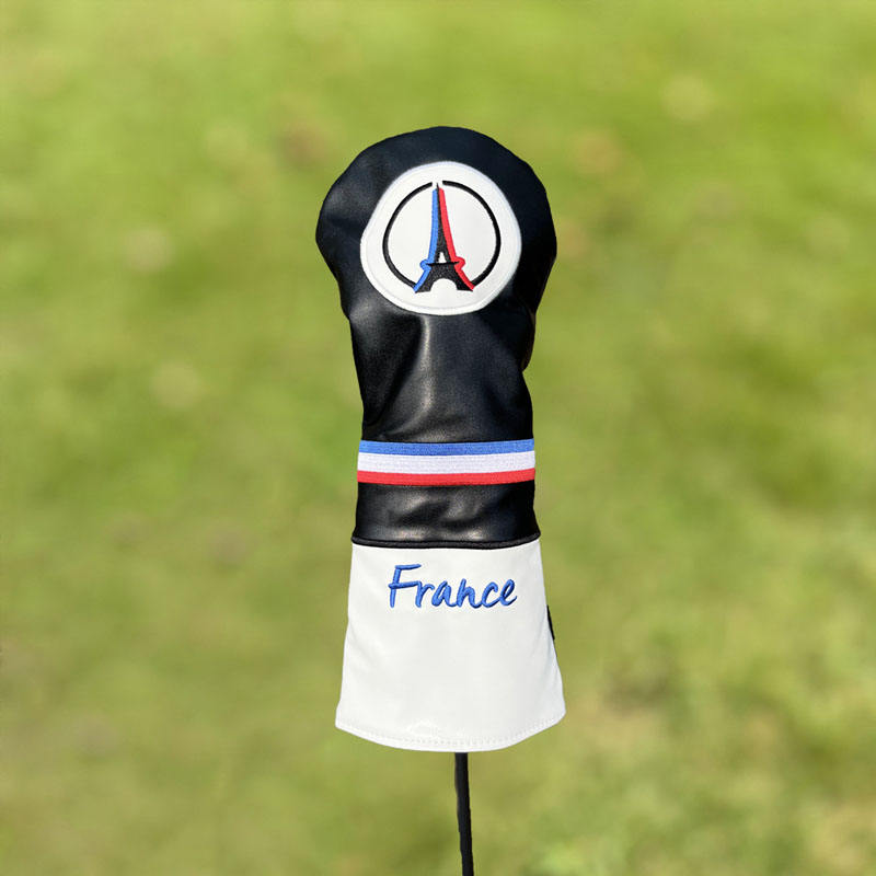 Bordado personalizado Francia Torre Eiffel Golf 460 CC Driver Premium PU cuero madera Club Headcover impermeable característica