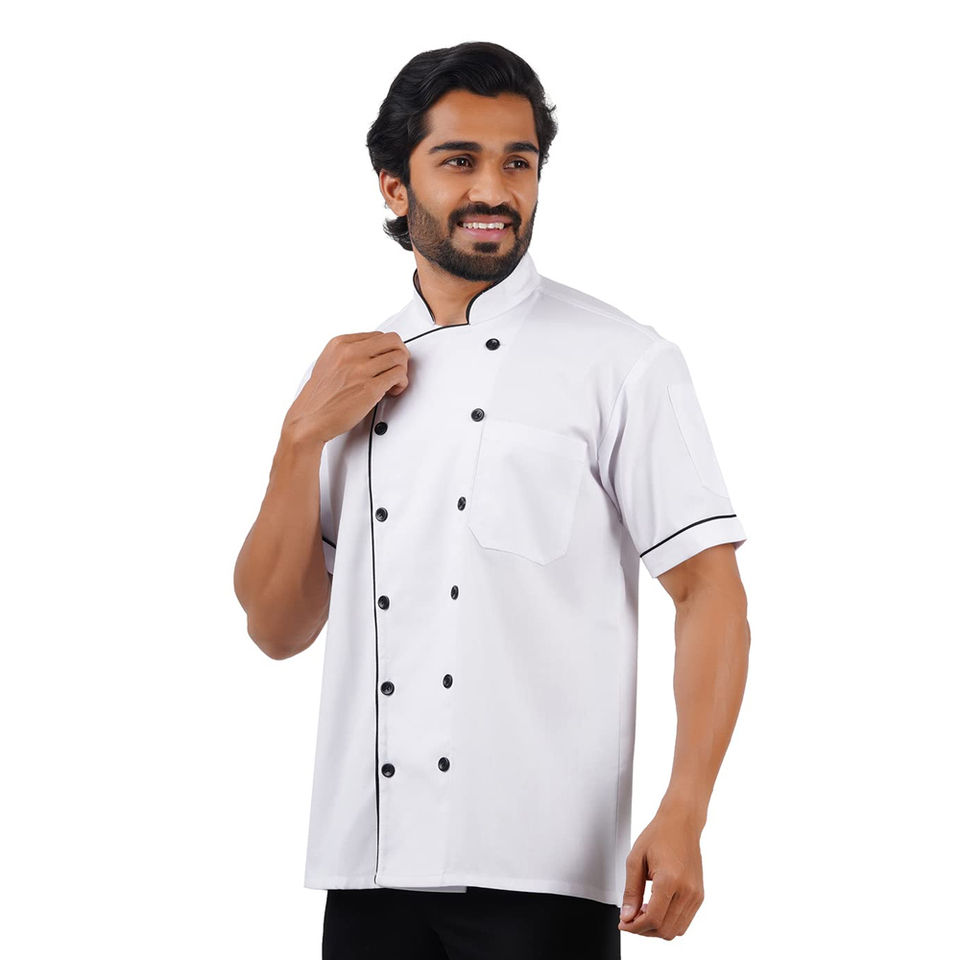 Chaquetas de Chef de hombre de alta calidad con logotipo bordado personalizado 2025 último diseño de manga larga abrigos de buen servicio para Cocina