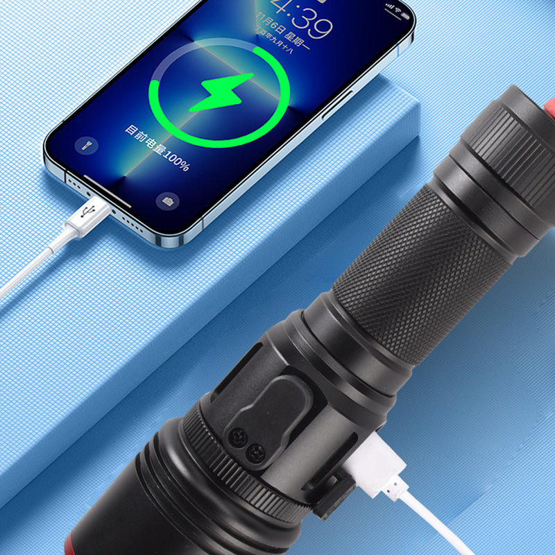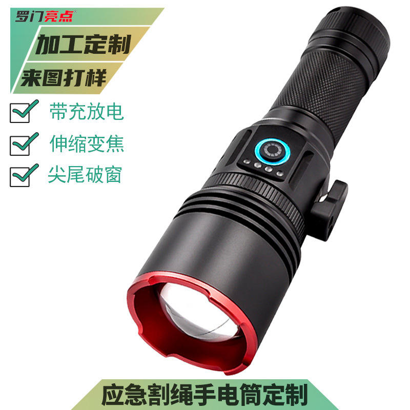 Linterna de Emergencia Personalizada de Alta Intensidad, Recargable, LED, Aleación de Aluminio, Zoom, Largo Alcance, Función de Corte de Cuerdas