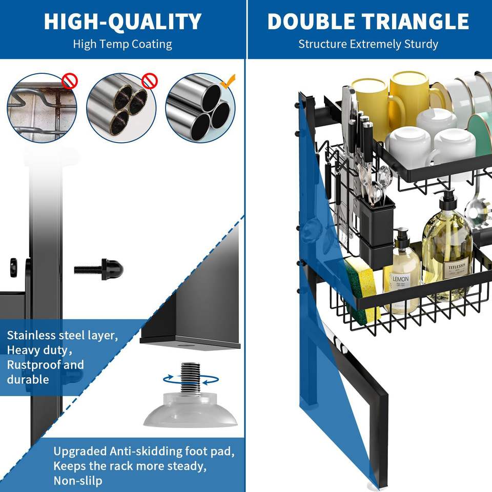 Estante de Almacenamiento Extensible Multifuncional para Fregadero de Cocina, Tamaño L, Ajustable, Escurridor de Platos, Organizador de Platos para Encimera