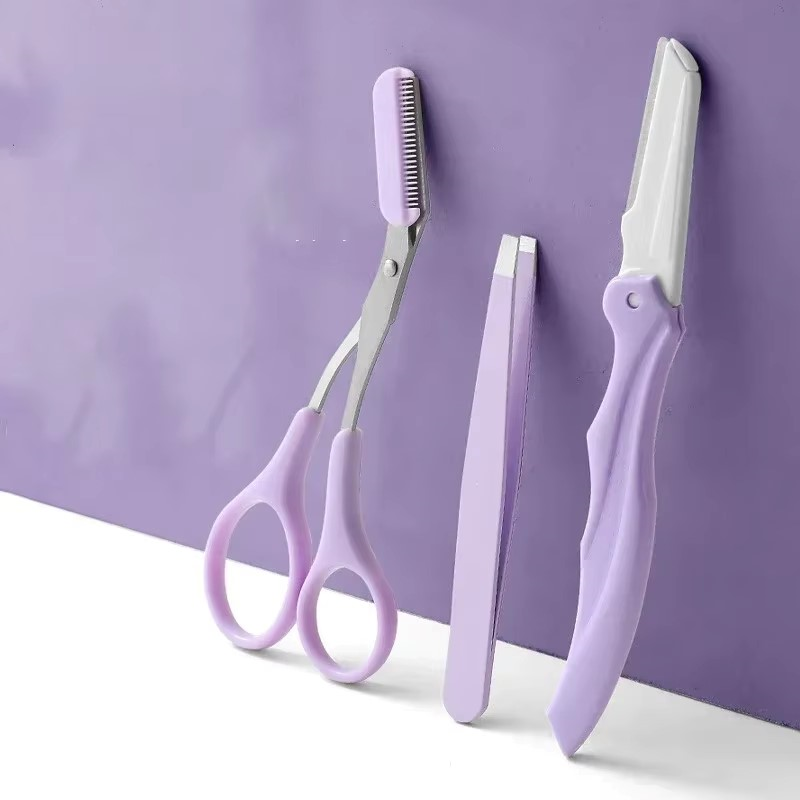 Tijeras para Cejas Personalizadas con Peine, Juego de 3 Piezas, Portátiles, Marca Privada, Herramientas de Maquillaje para Recortar y Arreglar las Cejas