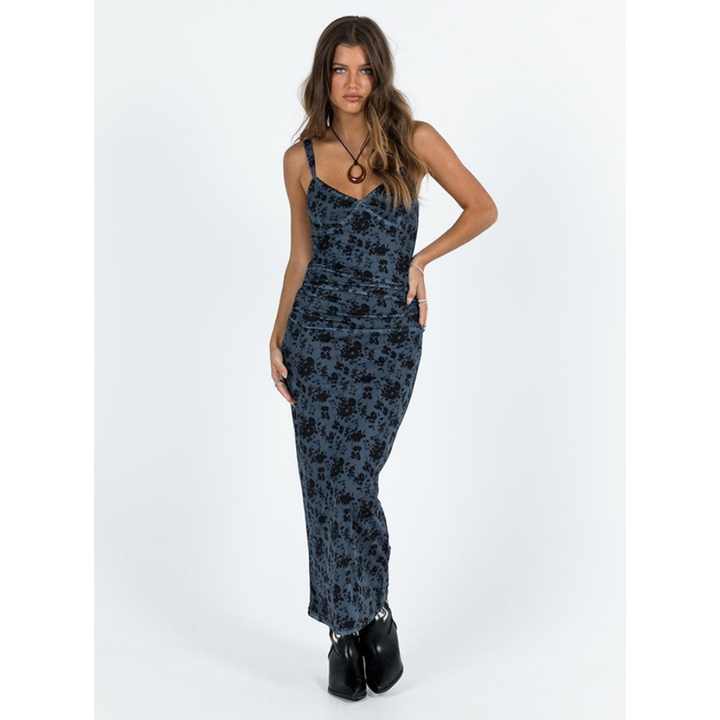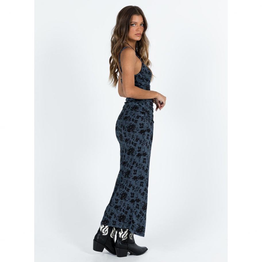 Vestido de Tirantes Azul Estilo Bohemio, Asimétrico, con Encaje, Ecológico y Personalizado, para Otoño