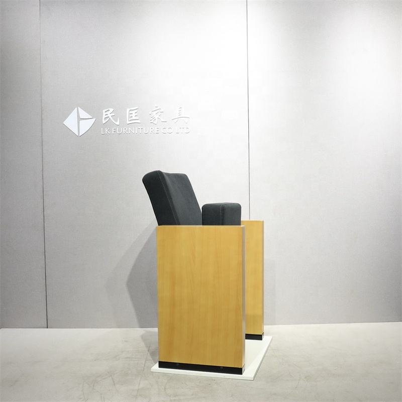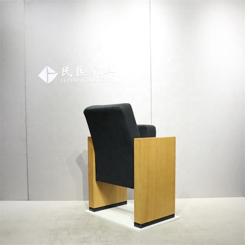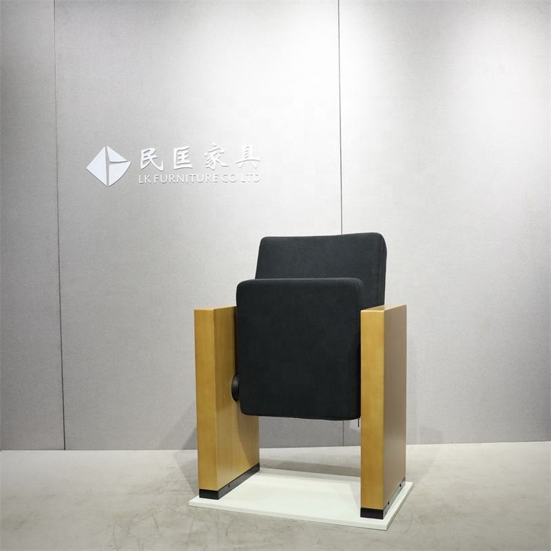 Silla plegable de tela personalizada para sala de conferencias universitarias, silla de asiento de teatro con patas de madera
