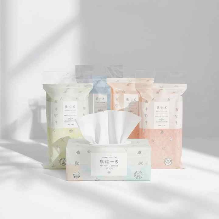 Caja de pañuelos faciales personalizada con diseño artístico de lujo para cadenas de supermercados e importadores, compra al por mayor