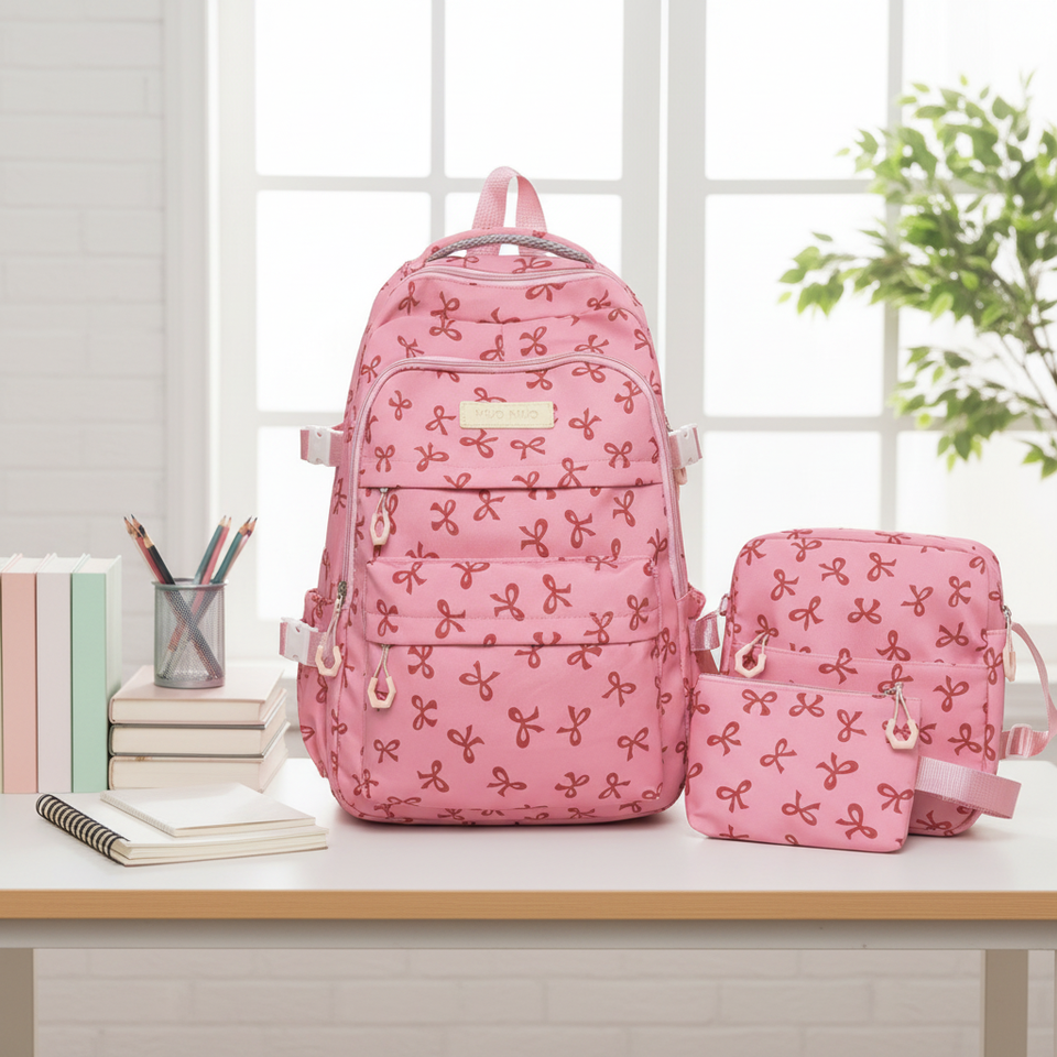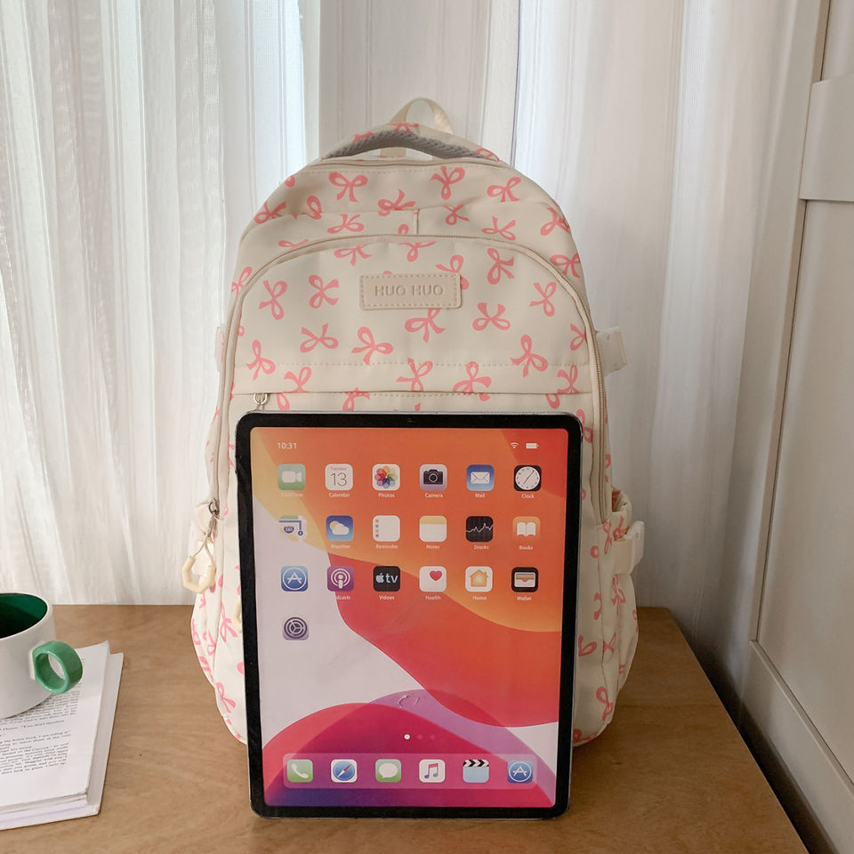 Mochila Personalizada de Moda para Estudiantes, Impermeable, de Nailon, con Lazo, Gran Capacidad, Cierre de Cremallera