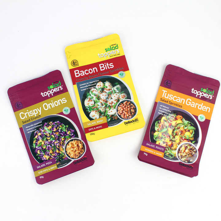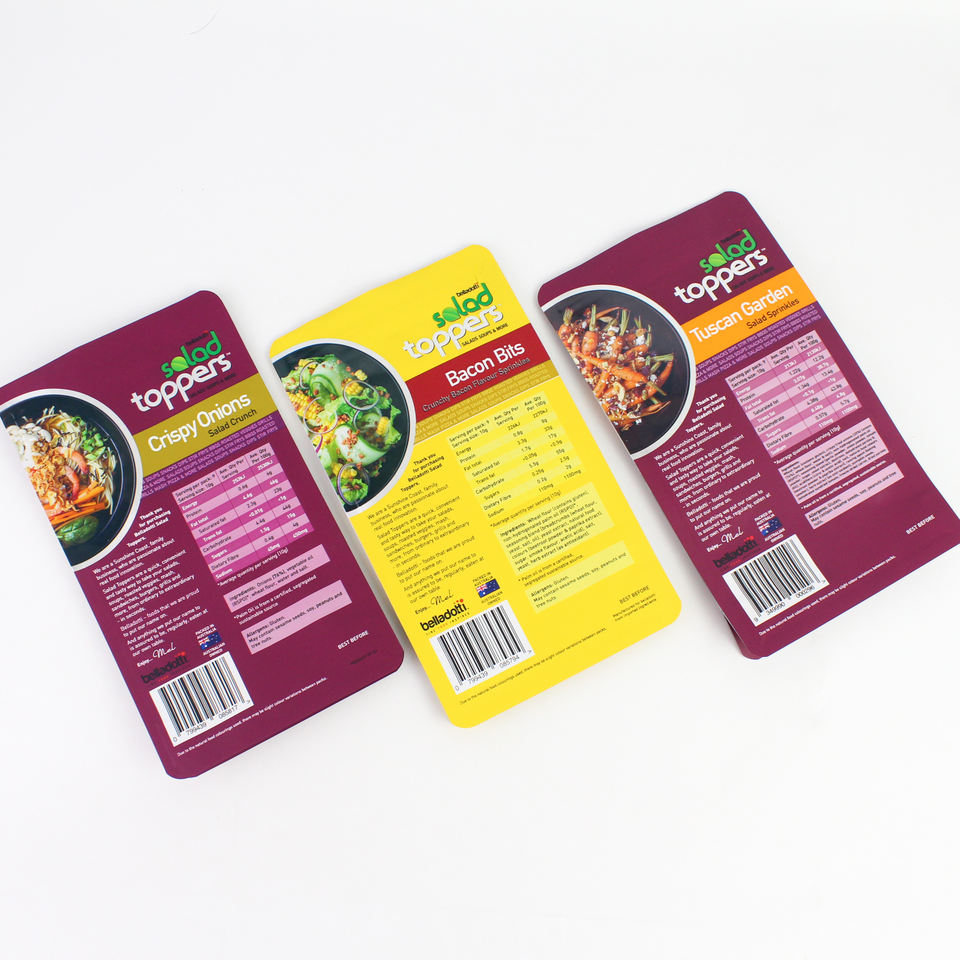 Envasado de alimentos congelados rápido personalizado, bolsa de soporte a prueba de humedad, Material PET de aluminio PE para ensalada, condimento, tocino, leche/gelatina