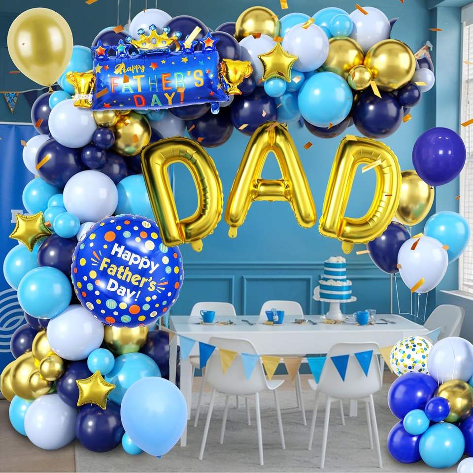 Kit de Guirnalda de Globos Metálicos Dorados y Azules Personalizados para el Día del Padre con Globos Grandes de Papá para la Fiesta del Día del Padre