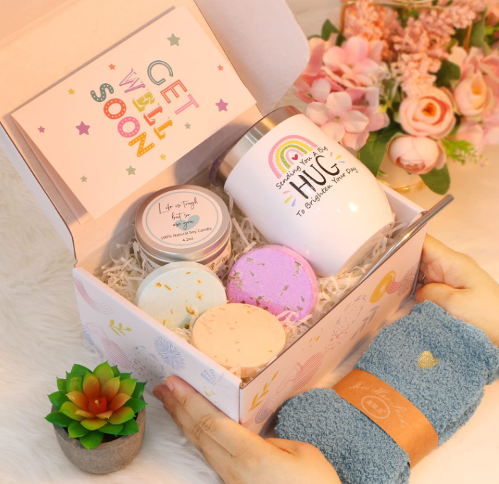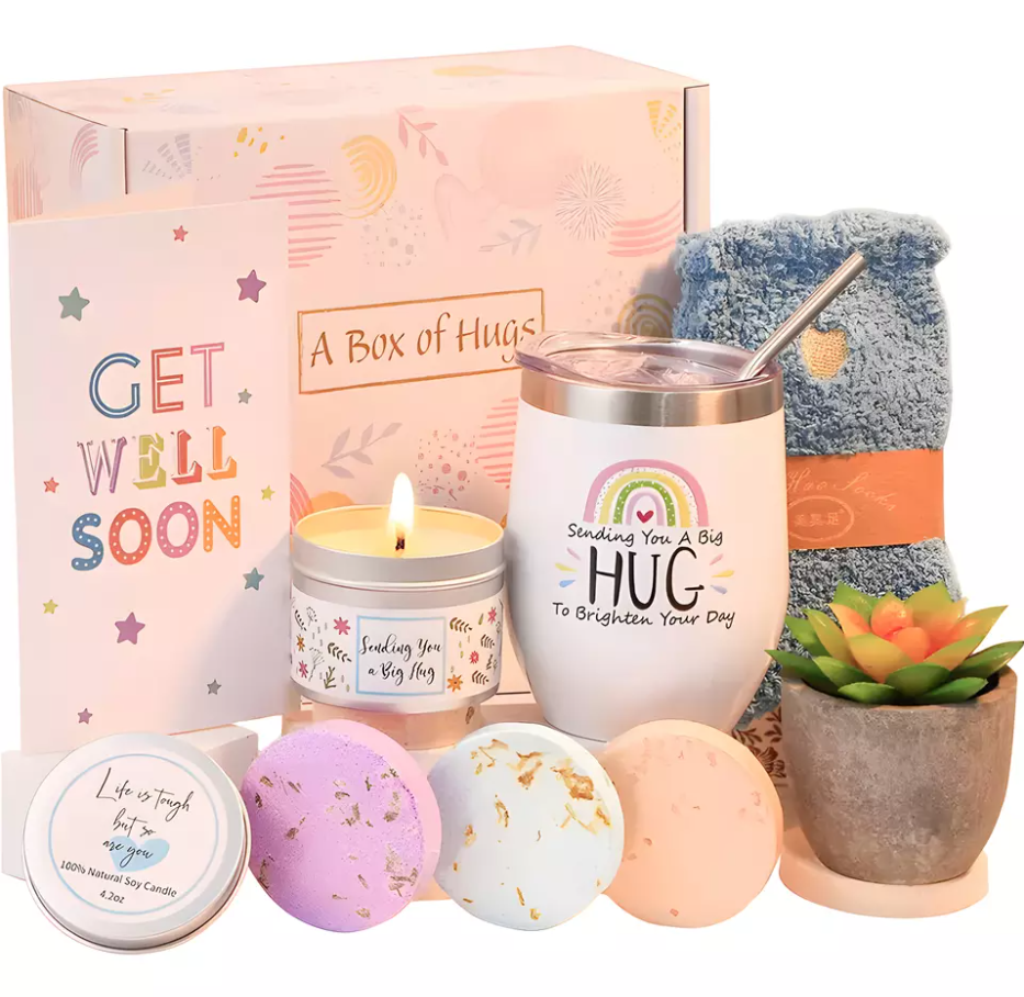 Personalizado sentir mejor pronto regalo cesta spa velas perfumadas, regalo de conseguir bien pronto Paquete de regalo
