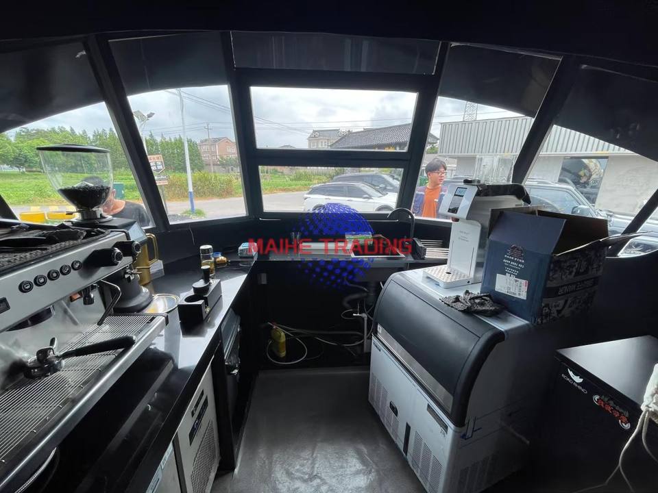 Carrito de Comida Móvil Personalizado de Fibra de Vidrio con Forma de Casco Gigante para Quiosco de Café, Hot Dogs y Papas Fritas para Mercados