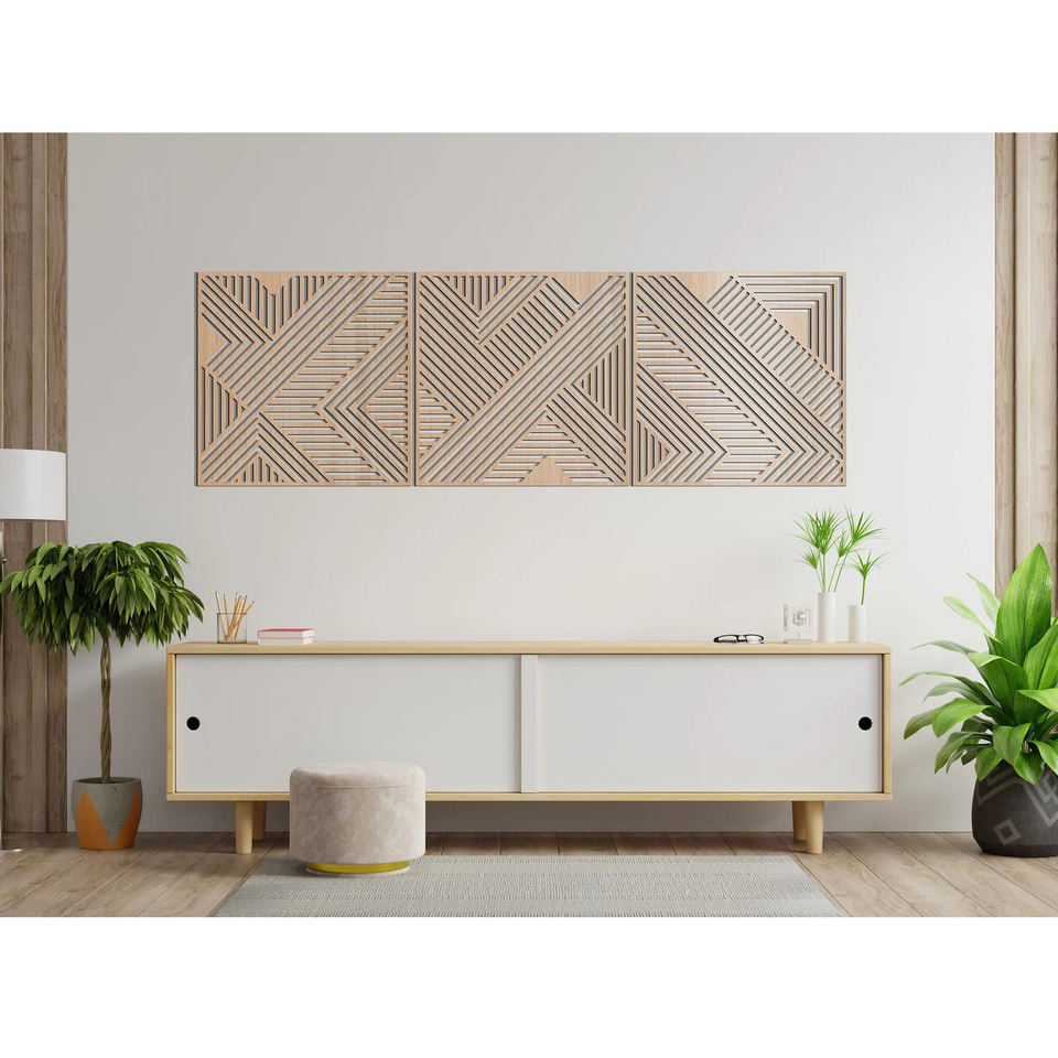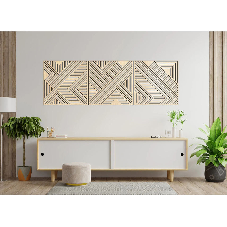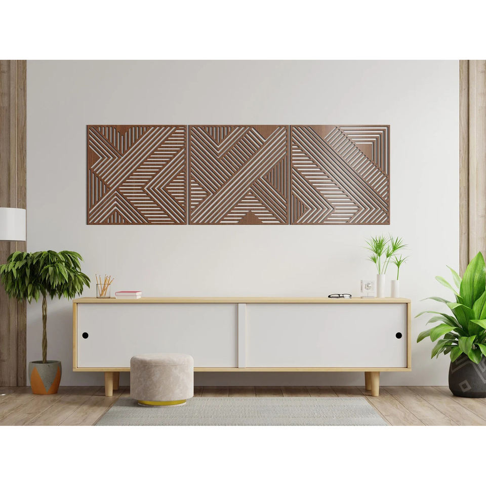 Arte de pared abstracto con acabado personalizado, corte láser de MDF cuadrado, diseño único, decoración de pared trasera para restaurante y hogar, respetuoso con el medio ambiente