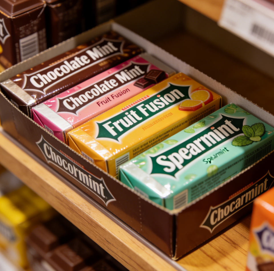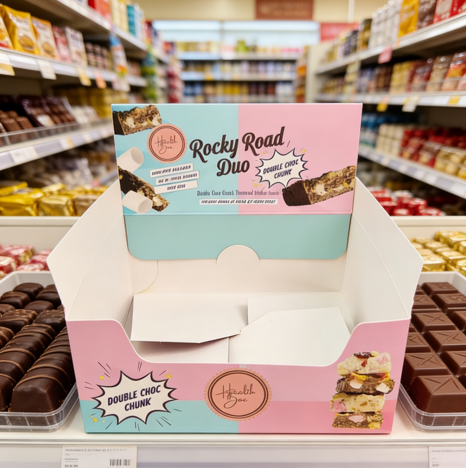 Cajas de Exhibición de Cartón Plegables Personalizadas para Chicles, Dulces y Golosinas, Caja de Embalaje con Apertura Fácil para Mostrador de Supermercado