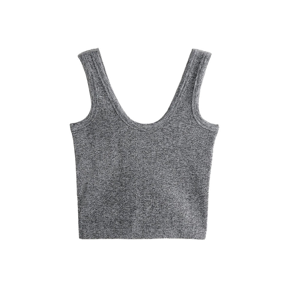 Camiseta sin Mangas Gris de Punto Acanalado para Mujer, con Logotipo Frontal Personalizado, Ecológica, de Secado Rápido, Transpirable, Holgada, con Cuello Redondo, para Verano
