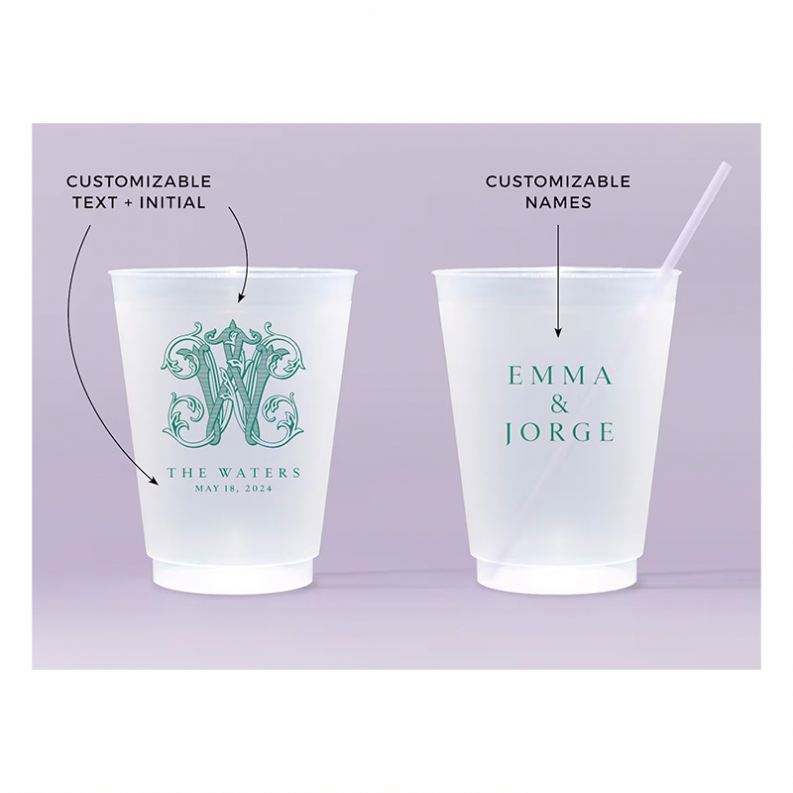 Vasos de Plástico Personalizados, Reutilizables, Resistentes al Agua, Flexibles, Antirrotura, Estilo Romántico, Recuerdos de Boda Modernos