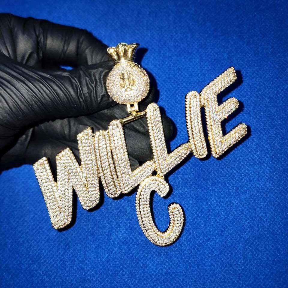 Colgante Personalizado con Nombre en Letra, Totalmente Cubierto de Diamantes Moissanite, Chapado en Rodio, Plata de Ley 925, Estilo Hip Hop para Hombre