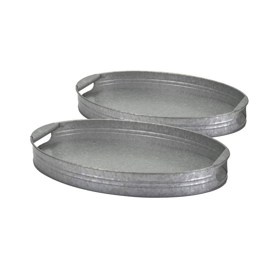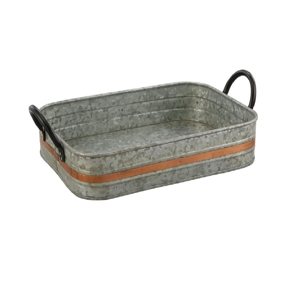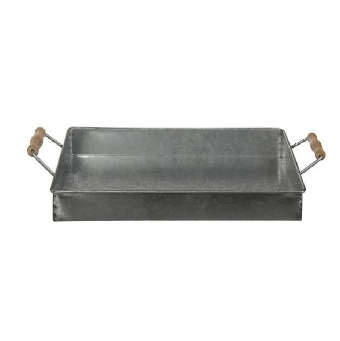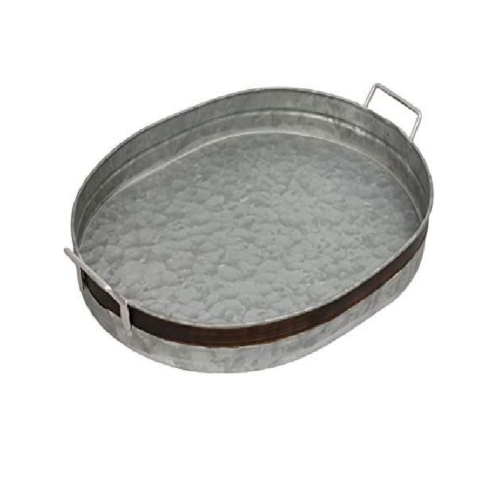 Bandeja de Servicio de Metal Galvanizado Personalizada con Asas de Madera, Bandejas Decorativas Apilables para Almacenamiento, para Uso en el Hogar y Hoteles