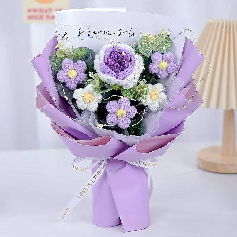 Regalos Personalizados Hechos a Mano, Luces LED Tejidas, Ramo de Flores Tejidas a Crochet para el Día de la Madre, Regalos de San Valentín