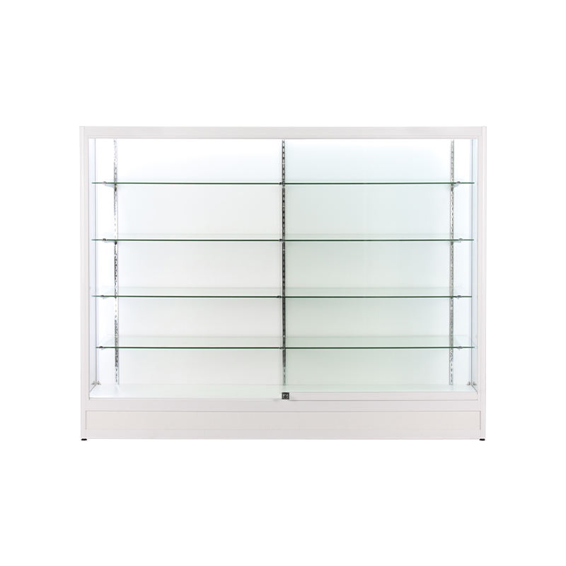 Vitrina de cristal personalizada, vitrina de tienda minorista, estantes de cristal ajustables, puerta corredera, vitrina de tienda