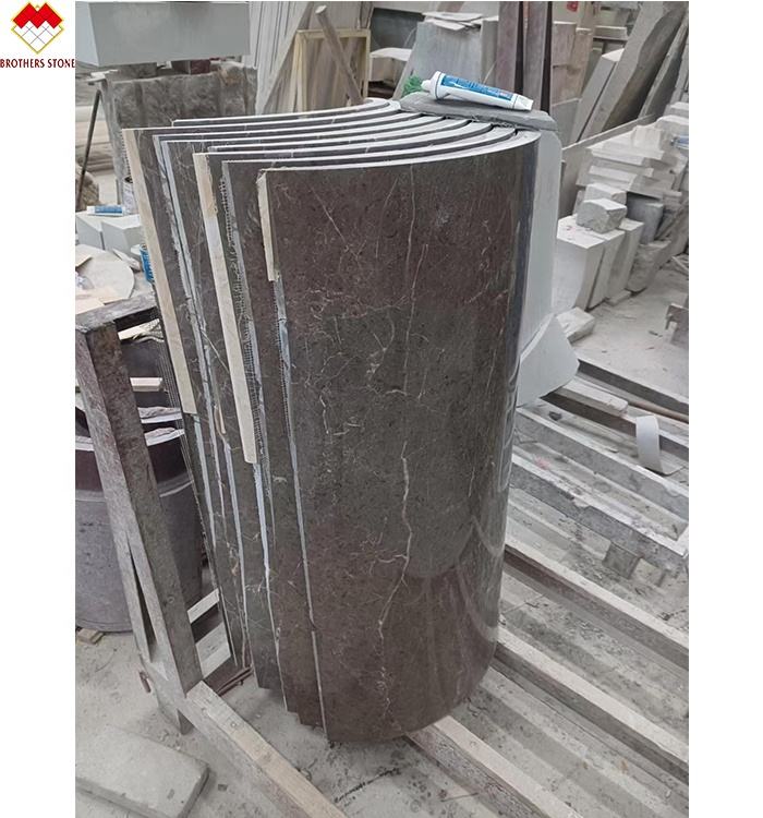 Columna de mármol gris personalizada, revestimiento de arco hueco, diseño de pilar de mármol