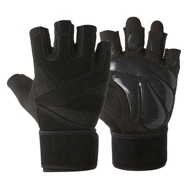 Guantes de cuero personalizados para gimnasio, manoplas largas para levantamiento de pesas, Unisex