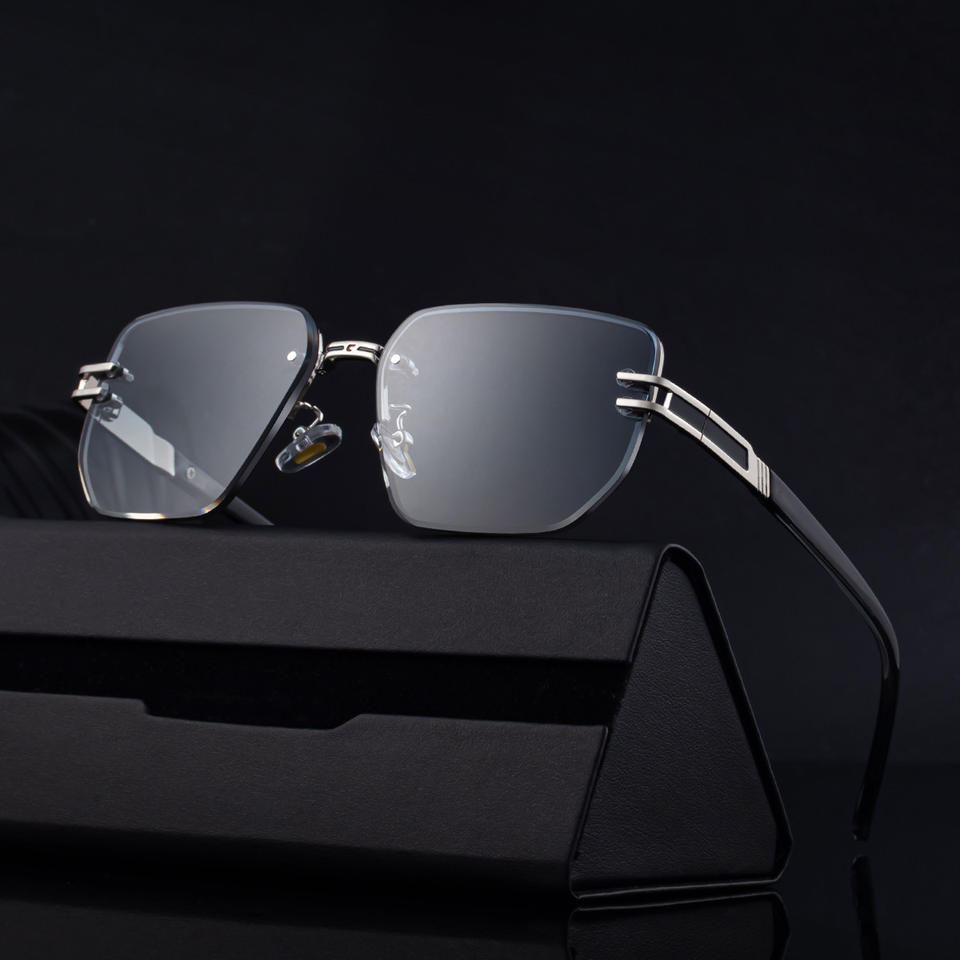 Gafas de sol poligonales de media montura personalizadas para hombre, montura negra, lentes de PC, protección UV400, estilo Instagram, uso en exteriores