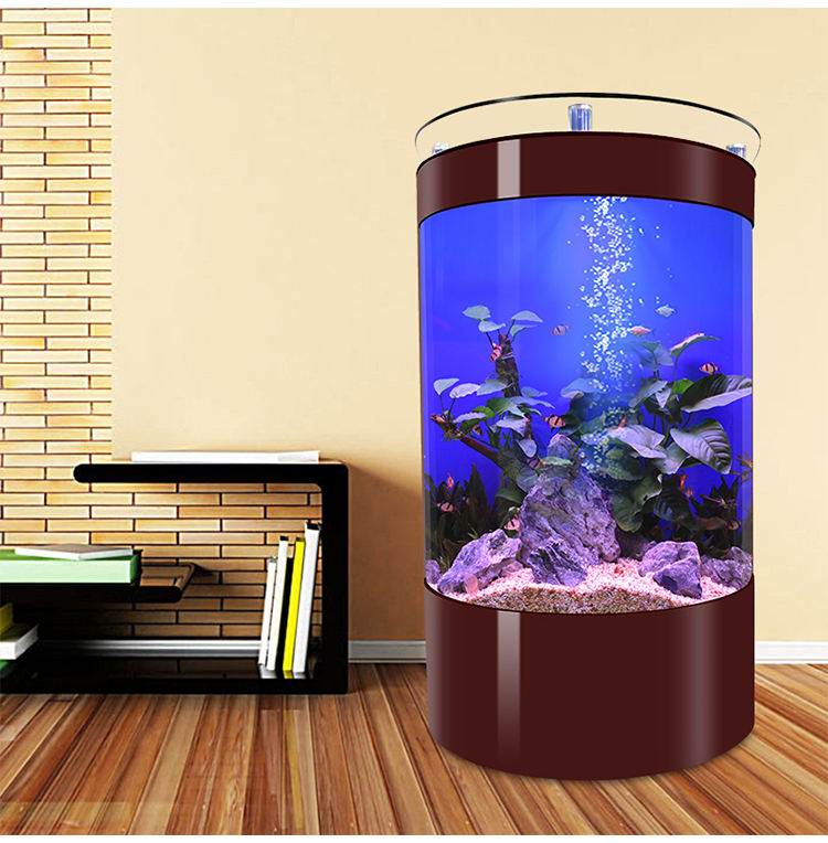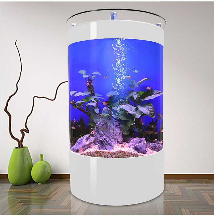 Acuario de acrílico semicircular personalizado con frente de vidrio tipo bala y barra superior