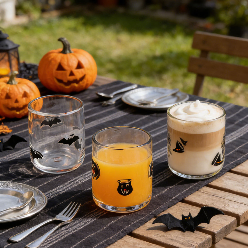 Vasos Transparentes para Bebidas Frías con Diseño de Dibujos Animados Estilo Halloween Personalizados con Parche para Agua, Vino y Jugo