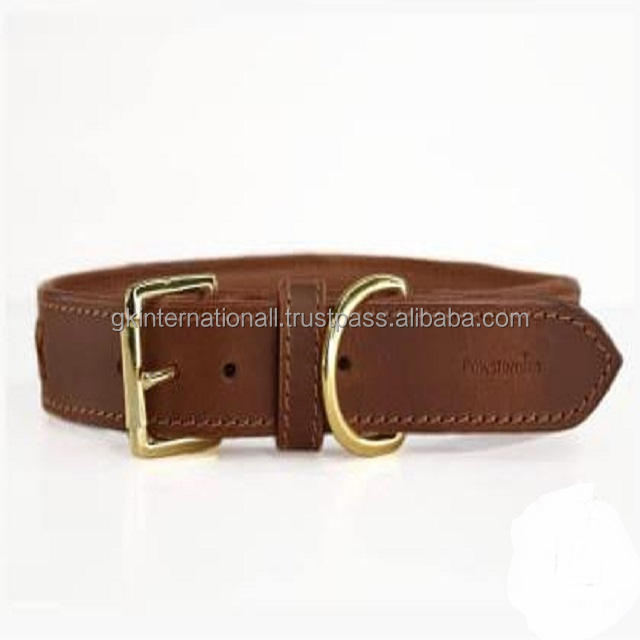 Collar de perro de cuero acolchado suave cosido borde fuerte diseño trenzado a mano personalizado con accesorios de latón chapado en oro de lujo