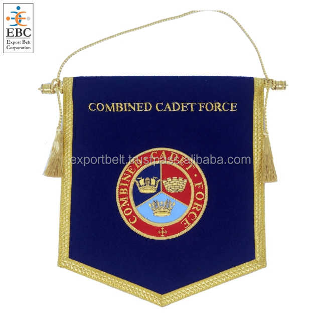 Banderas y Estandartes Bordados a Mano Personalizados al por Mayor con Flecos Dorados y Parches Bordados a Medida