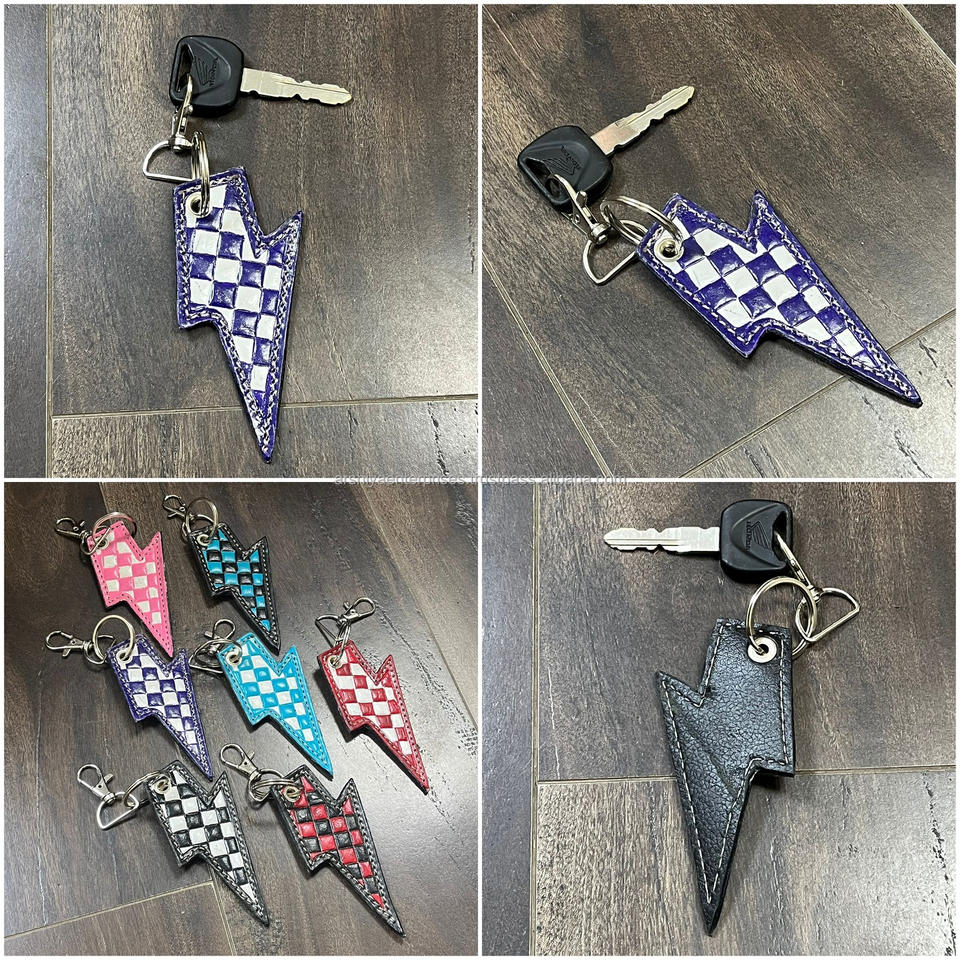 Nombre del Producto:Llavero de cuero repujado a mano con diseño a cuadros