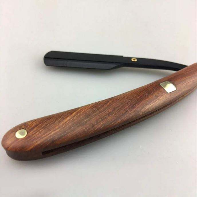 Maquinilla de afeitar personalizada de acero inoxidable de una sola hoja, maquinilla de afeitar manual plegable para salón de belleza con mango de madera