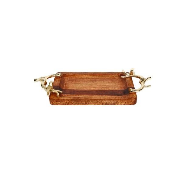 Bandeja de madera decorativa hecha a mano personalizada, con mango de Metal, plato de servicio y platos de cena para té y café