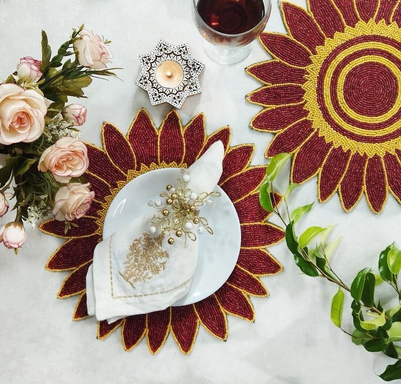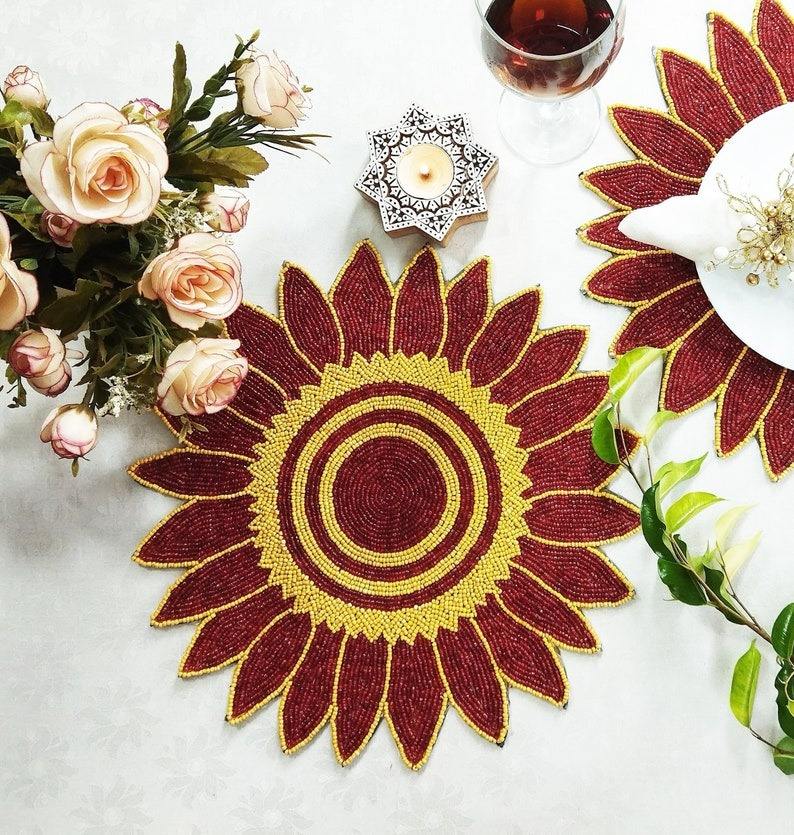 Mantel Individual de Cuentas de Vidrio Hecho a Mano, Ecológico y de Lujo, para Comedor, Bodas y Celebraciones