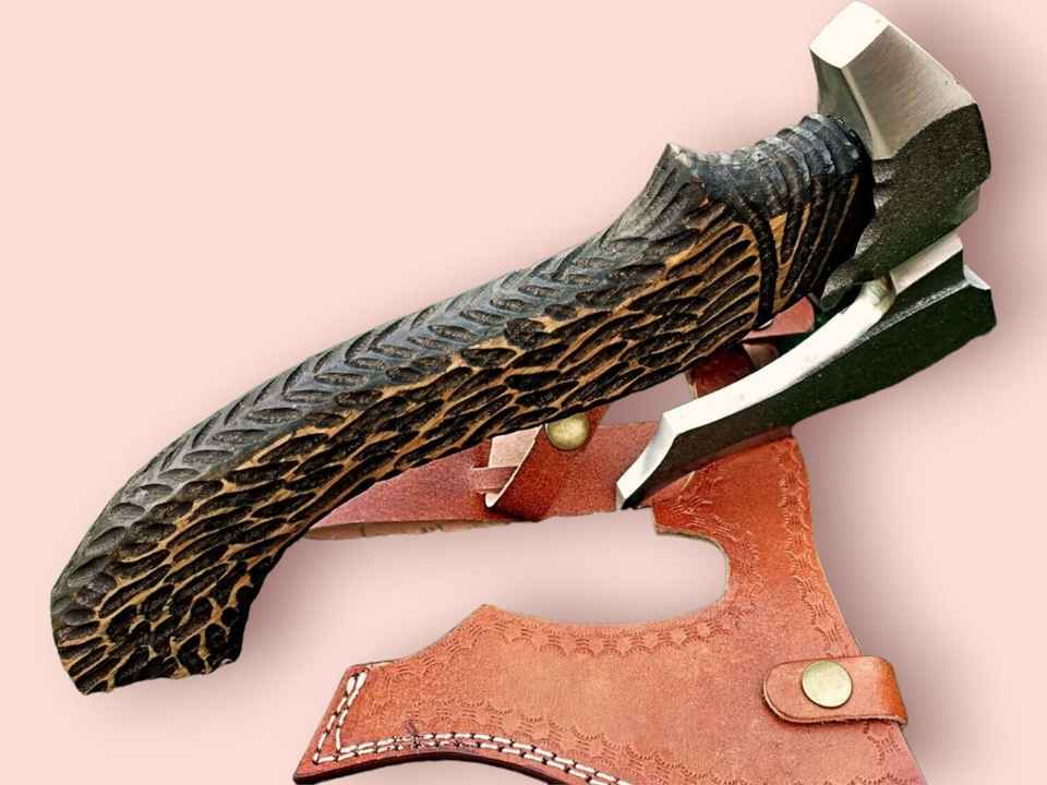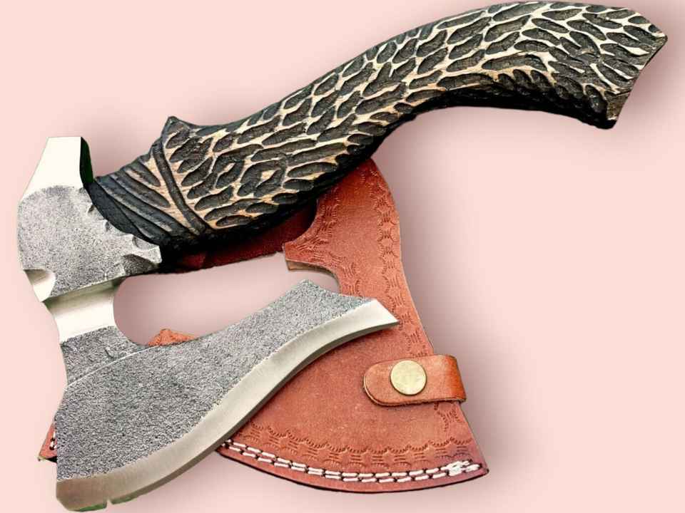 Hacha de pizza de acero de alto carbono hecha a mano personalizada con mango de madera de Fresno y Funda de cuero fino hachas hechas a mano hacha de cocina hacha de carne
