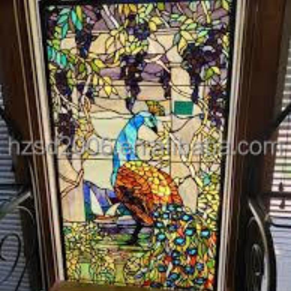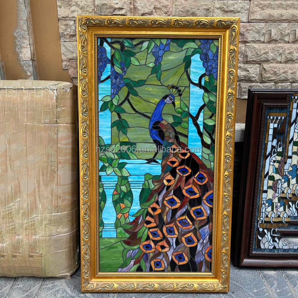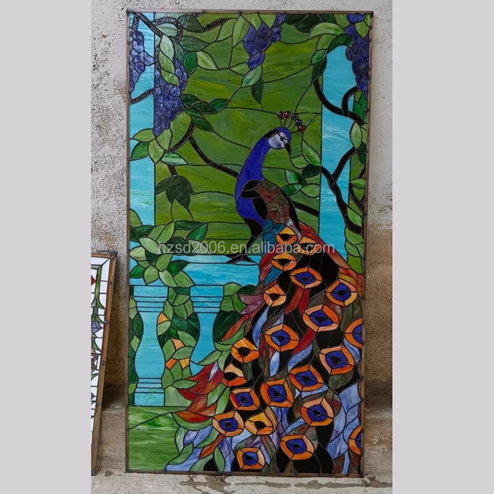 Panel de Vidrio Doble con Diseño de Pavo Real, Hecho a Mano y Personalizado, para Ventana, Puerta, Pared o Cortina, Estilo Catedral China