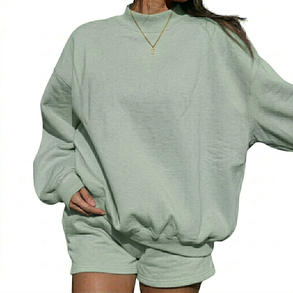 Conjunto de Sudadera y Pantalón Corto Reversible de Cuello Alto Personalizado para Mujer, de Gran Tamaño, para Invierno, con Logotipo Personalizado
