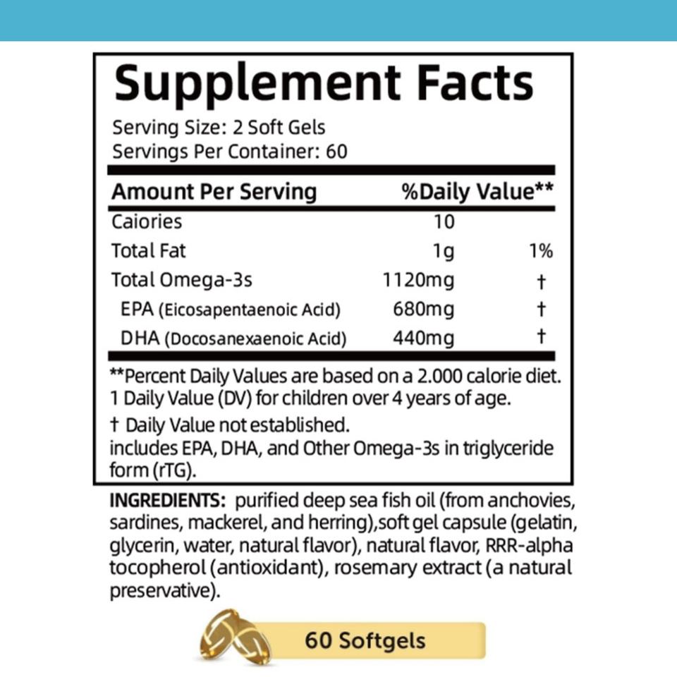 Extracto de Aceite de Pescado Herbal Personalizado 1120 mg 60 Cápsulas Blandas Apoya la Salud del Corazón para Hombres y Mujeres Cápsulas Blandas de Aceite de Pescado