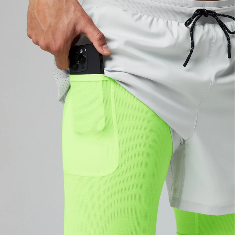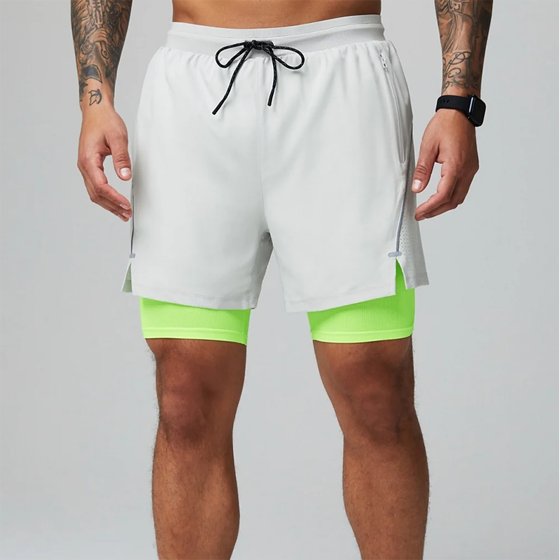 Pantalones Cortos Deportivos para Hombre, Personalizados, de Alta Elasticidad, con Doble Función y Bajo Dividido, Reflectantes