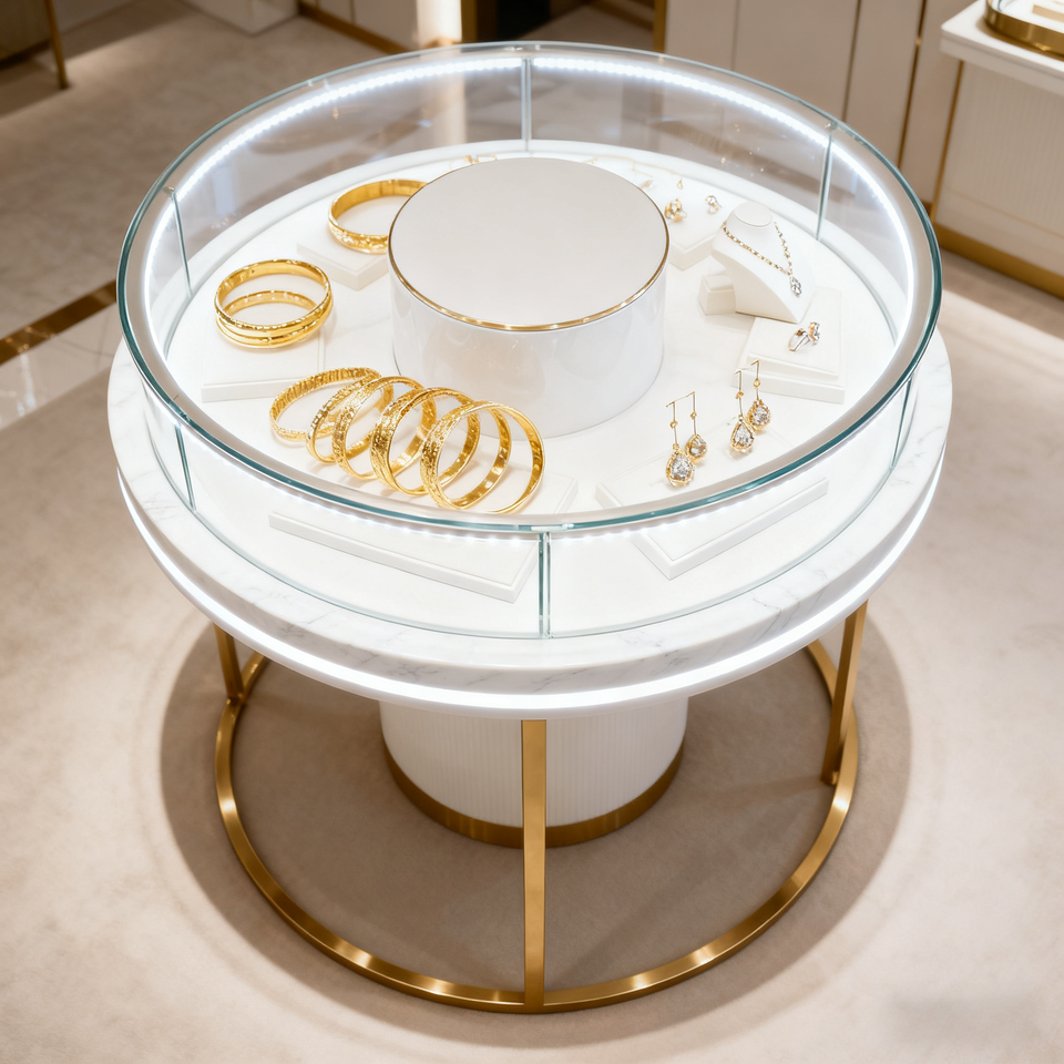 Vitrina de Exhibición Circular Curva de Pared para Tienda de Marca de Alta Gama Personalizada, Vitrina con Iluminación LED
