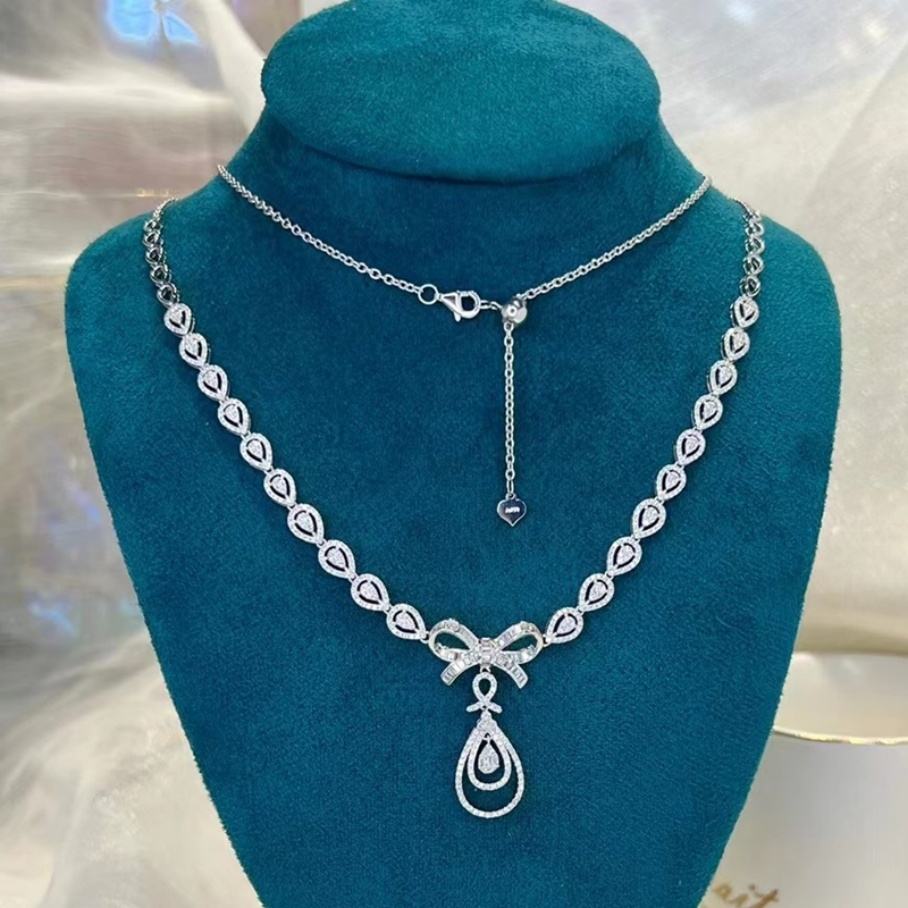 Nombre:Diamantes Blancos Oro Blanco 18K Joyería Fina para Mujer Collares Joyas