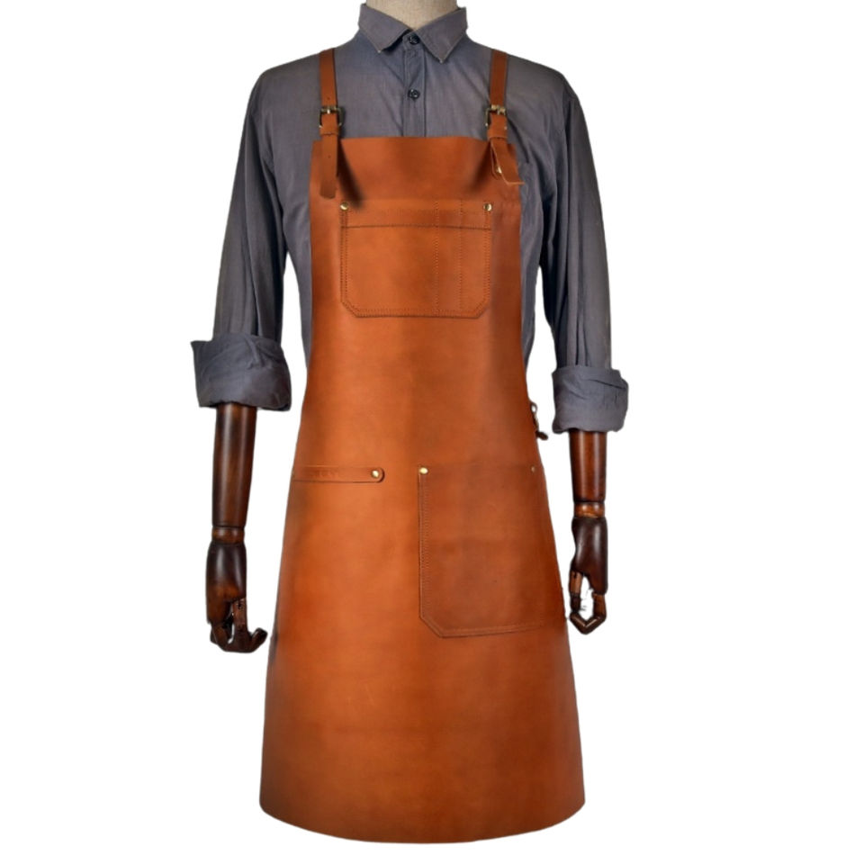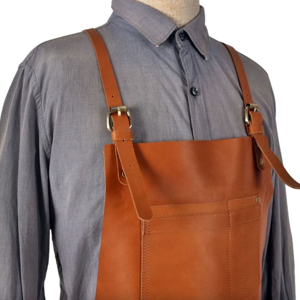 Delantal de Cocina Personalizado de Alta Calidad con Logotipo Personalizado, Delantal de Chef de Cuero y Lona para Restaurante, con Tirantes Cruzados de Algodón para Cocina, Bares y Cafeterías