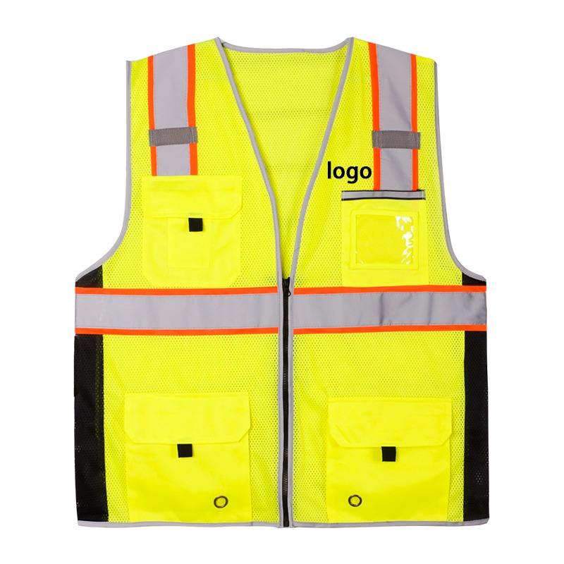 Chaleco Reflectante de Alta Visibilidad Amarillo Fluorescente Personalizado de Alta Calidad, 100% Poliéster, para Construcción, con Logotipo