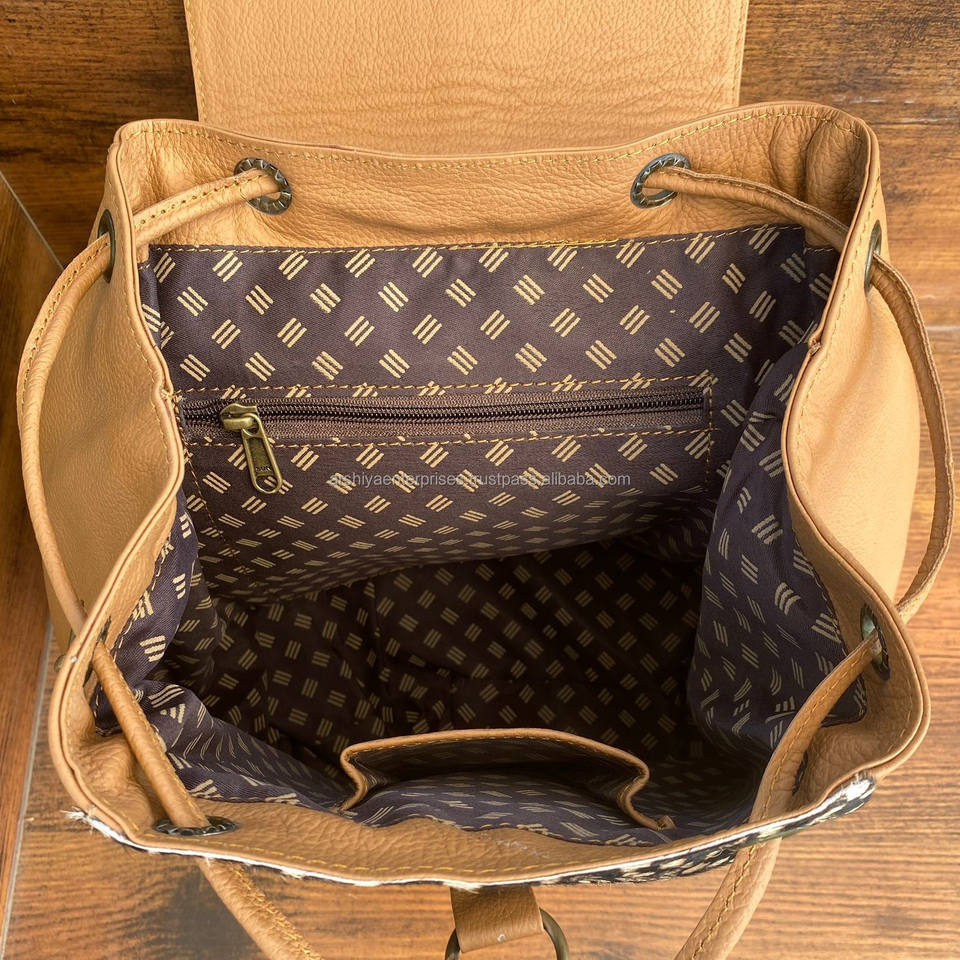 Mochila para estudiantes con cordón informal de cuero genuino de grano completo de alta calidad personalizada, mochilas escolares de piel de vaca de gran capacidad