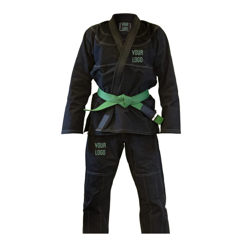 Kimono de Jiu Jitsu Personalizado de Alta Calidad, Ultraligero, Negro, Homologado por la IBJJF, 350 g/m², Tejido de Perlas de Algodón Premium, Logotipo Frontal BJJ, Unisex para Adultos