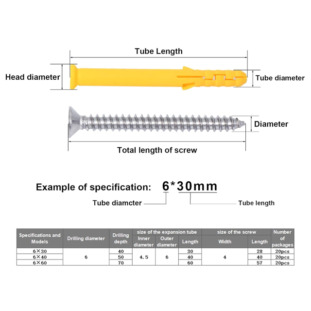 Nombre del producto:Personalizar Philips Tornillos de cabeza plana Anclajes de plástico para hormigón