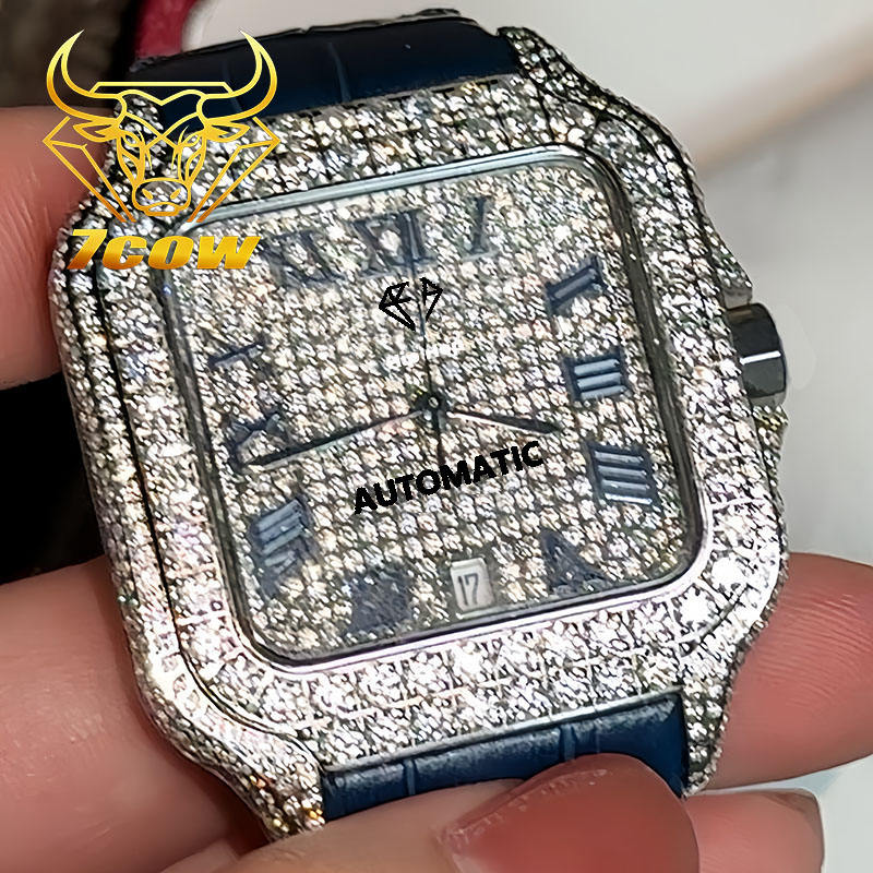 Relojes Mecánicos Personalizados de Alta Calidad para Hombre con Esfera Azul Romana de Moissanita VVS, Reloj con Caja y Certificado GRA que Pasa la Prueba del Diamante